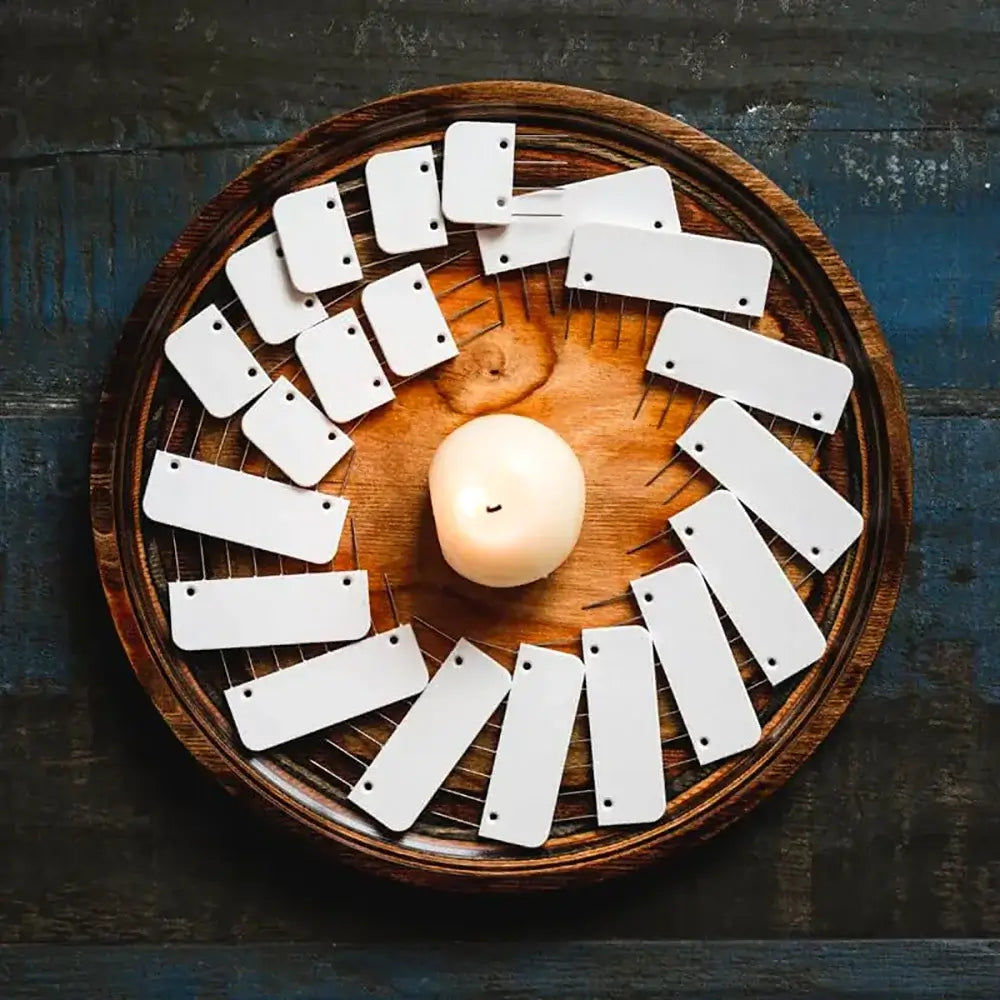 - ▷ Cuerpo de plástico robusto en color blanco, fácil de ver sobre la superficie de bloqueo y el tejido.