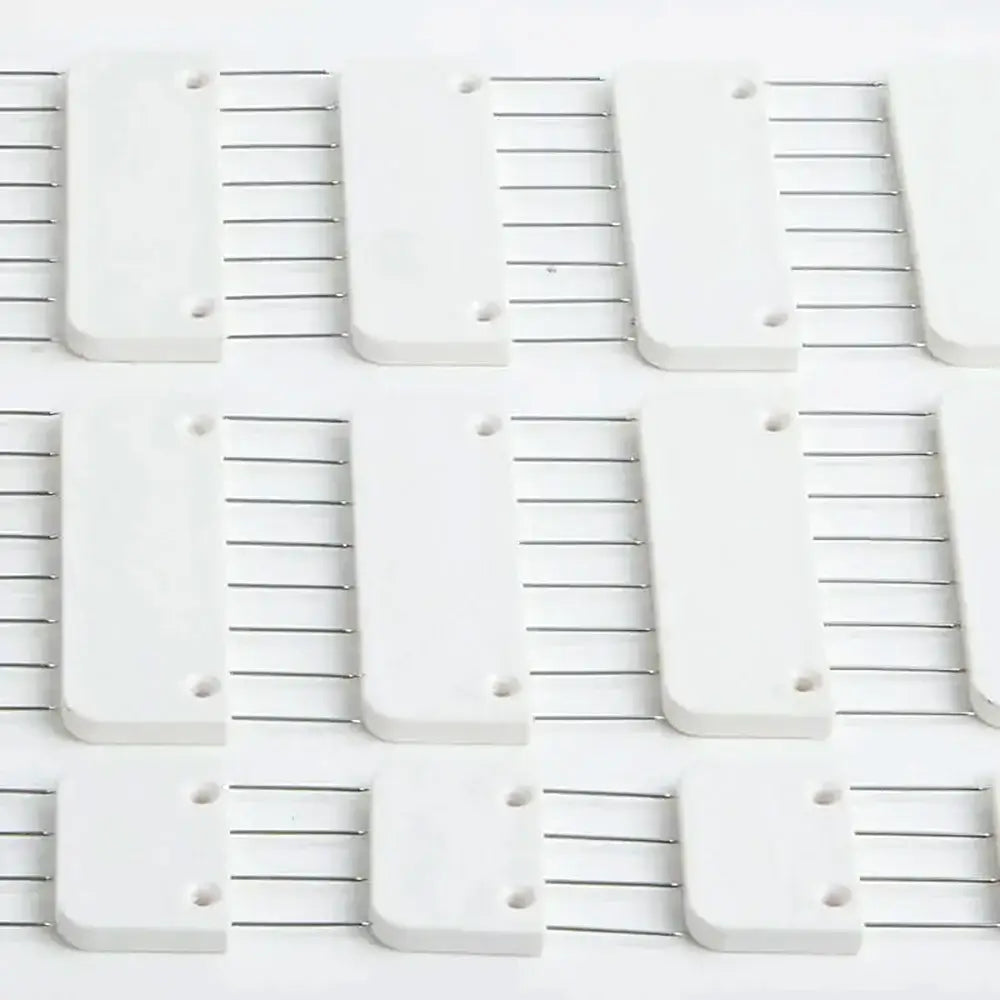 Las agujas bloqueadoras KnitPro blancas son un sistema de peines de bloqueo diseñado para agilizar el proceso de bloqueo y mejorar el acabado final de tus prendas de punto y ganchillo. El kit incluye 20 bloqueadores de punto KnitPro en color blanco, con varios pines de acero inoxidable integrados en cada pieza, para trabajar bordes largos y curvas con mucha más estabilidad que con alfileres sueltos.