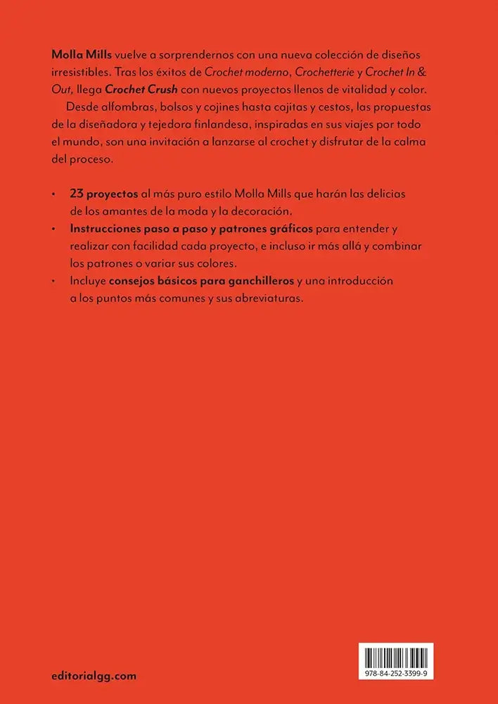 El libro Crochet Crush es una declaración de amor al ganchillo contemporáneo. Con su inconfundible estilo gráfico, Molla Mills propone 23 proyectos que combinan formas geométricas, contrastes cromáticos y funcionalidad. Desde bolsos estructurados hasta alfombras con patrones modulares, cada diseño está pensado para tejedoras que valoran tanto la estética como la técnica. El enfoque del libro es fresco, urbano y decididamente visual, con composiciones limpias que se alejan de los tópicos tradicionales del crochet.