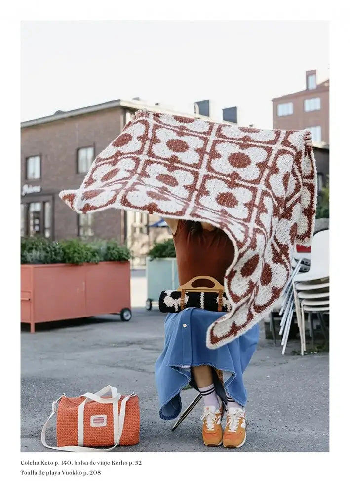 A nivel estilístico, el libro destaca por su enfoque cromático y su lenguaje gráfico. Los patrones se construyen con líneas claras, repeticiones bien marcadas y contrastes de alto impacto visual. La estética que propone Molla Mills conecta con el diseño escandinavo contemporáneo, pero con una personalidad irreverente y alegre. El libro Crochet Crush no busca parecer delicado ni neutral: es una propuesta con fuerza, pensada para tejedoras que quieren llevar su crochet más allá de lo funcional.