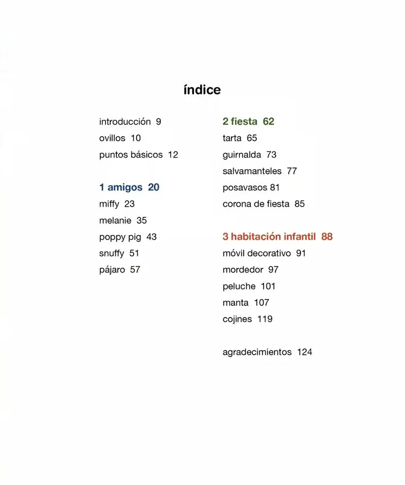 Dividido en tres grandes bloques temáticos –amigos, fiesta y habitación infantil–, el libro incluye un total de 15 proyectos de crochet de Miffy y sus entrañables compañeros. Encontrarás muñecos como Miffy, Melanie, Poppy Pig o Snuffy, pero también decoraciones como una tarta de cumpleaños, una guirnalda o un móvil para bebé. Cada proyecto se acompaña de imágenes inspiradoras, explicaciones detalladas y sugerencias cromáticas que facilitan el proceso creativo desde el inicio.