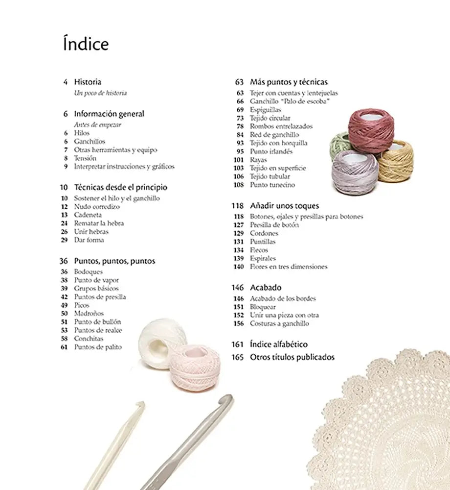Una de las grandes fortalezas de Ganchillo de la A a la Z es su estructura pedagógica, que comienza con nociones básicas como cómo sujetar el hilo o hacer una cadeneta, y avanza gradualmente hacia técnicas como el punto tunecino o el tejido circular. Cada explicación va acompañada de fotografías y descripciones sencillas, pensadas para facilitar el aprendizaje paso a paso sin abrumar al lector.