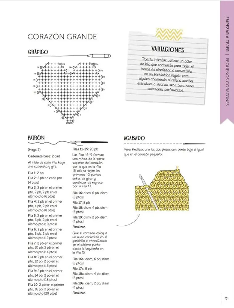 Aquí no se trata de leer y ya: el contenido reúne puntos básicos de ganchillo y técnicas para iniciarte, y cada punto nuevo se trabaja con una explicación detallada y esquemas fáciles de seguir. Lo importante es la práctica guiada: junto a lo aprendido aparece un proyecto concreto que te obliga a aplicar la técnica en una pieza completa. Ese método evita que te quedes en “muestras” sueltas y acelera la curva de aprendizaje.