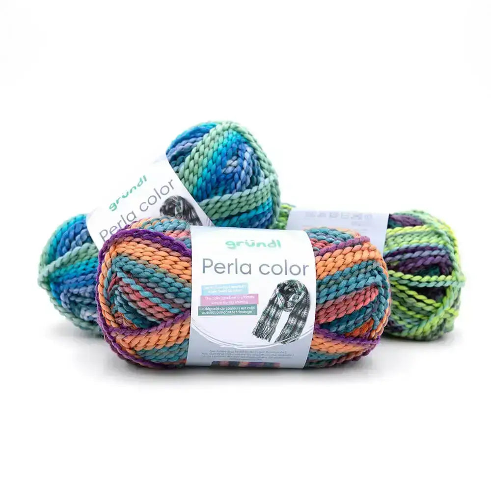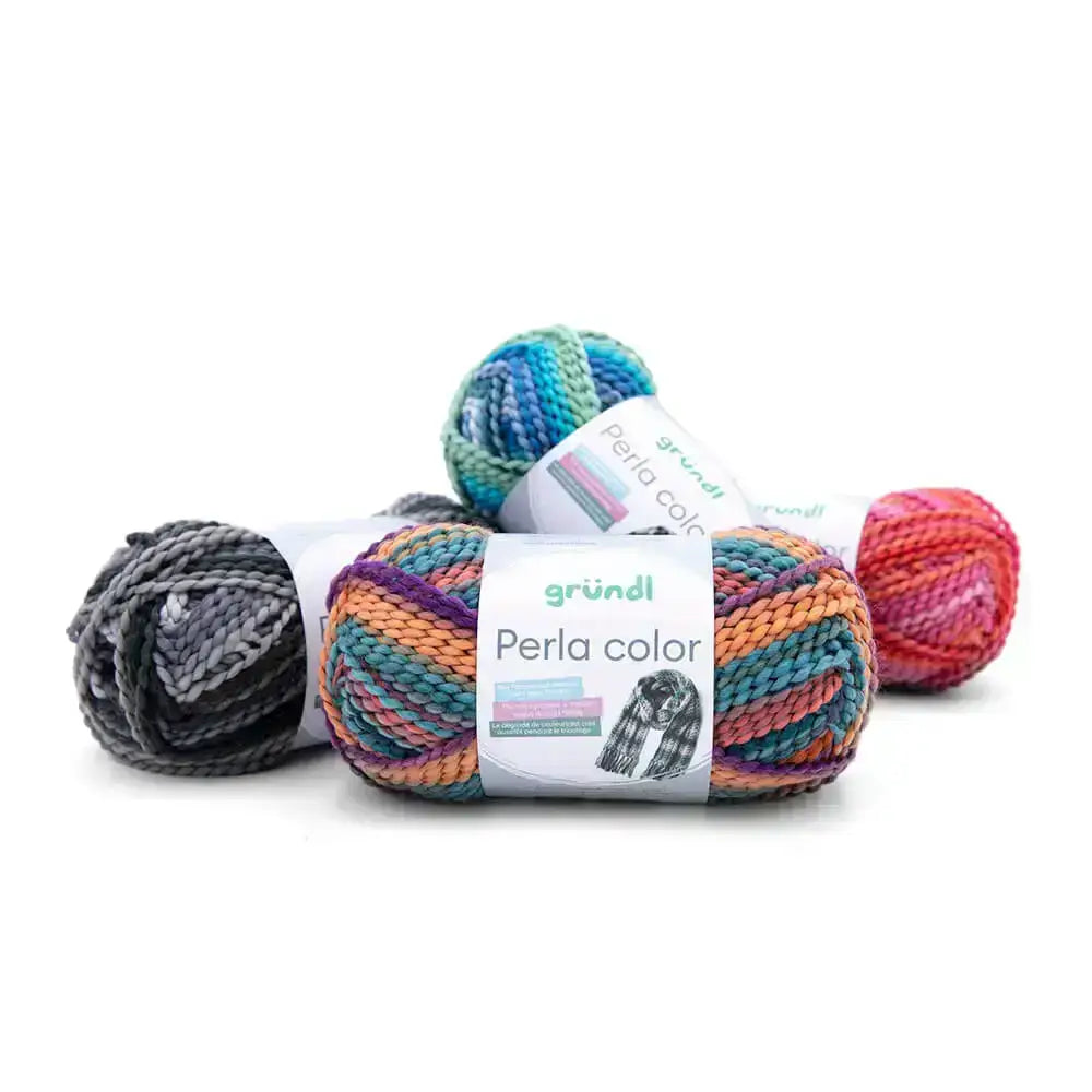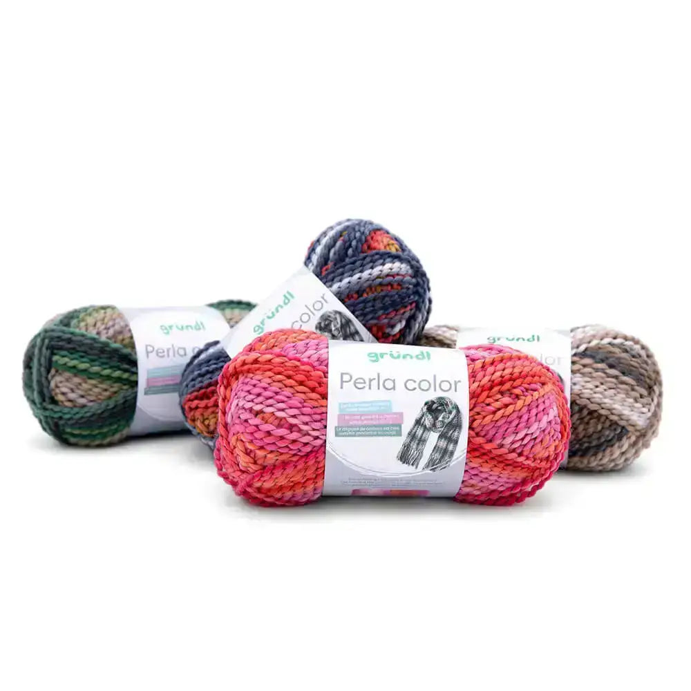 Cuando buscas una lana llamativa, suave y con personalidad, Gründl Perla Color se convierte en una opción creativa y moderna. Este hilo de fantasía combina volumen, ligereza y brillo en un mismo ovillo. Compuesto al 100 % por poliéster, destaca por su tacto agradable, su estructura esponjosa y un diseño singular: un núcleo mullido recubierto por un filamento brillante que genera un delicado efecto perlado a lo largo del tejido, además gracias a su mezcla de colores, hace a este hilo multicolor, ideal para accesorios como bufandas, cuellos o gorros.
