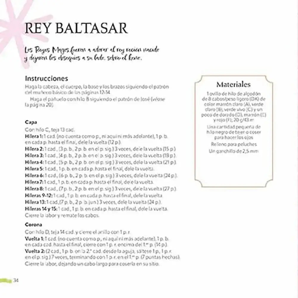 Una de las fortalezas de este libro es su enfoque pedagógico. Mi Belén de Ganchillo incluye una guía técnica inicial para comprender los puntos básicos del crochet, especialmente pensada para quienes no están habituadas a trabajar amigurumis. Cada patrón sigue un orden lógico: cabeza, cuerpo, brazos y accesorios, con indicaciones escritas fila a fila para no perderse en el proceso.