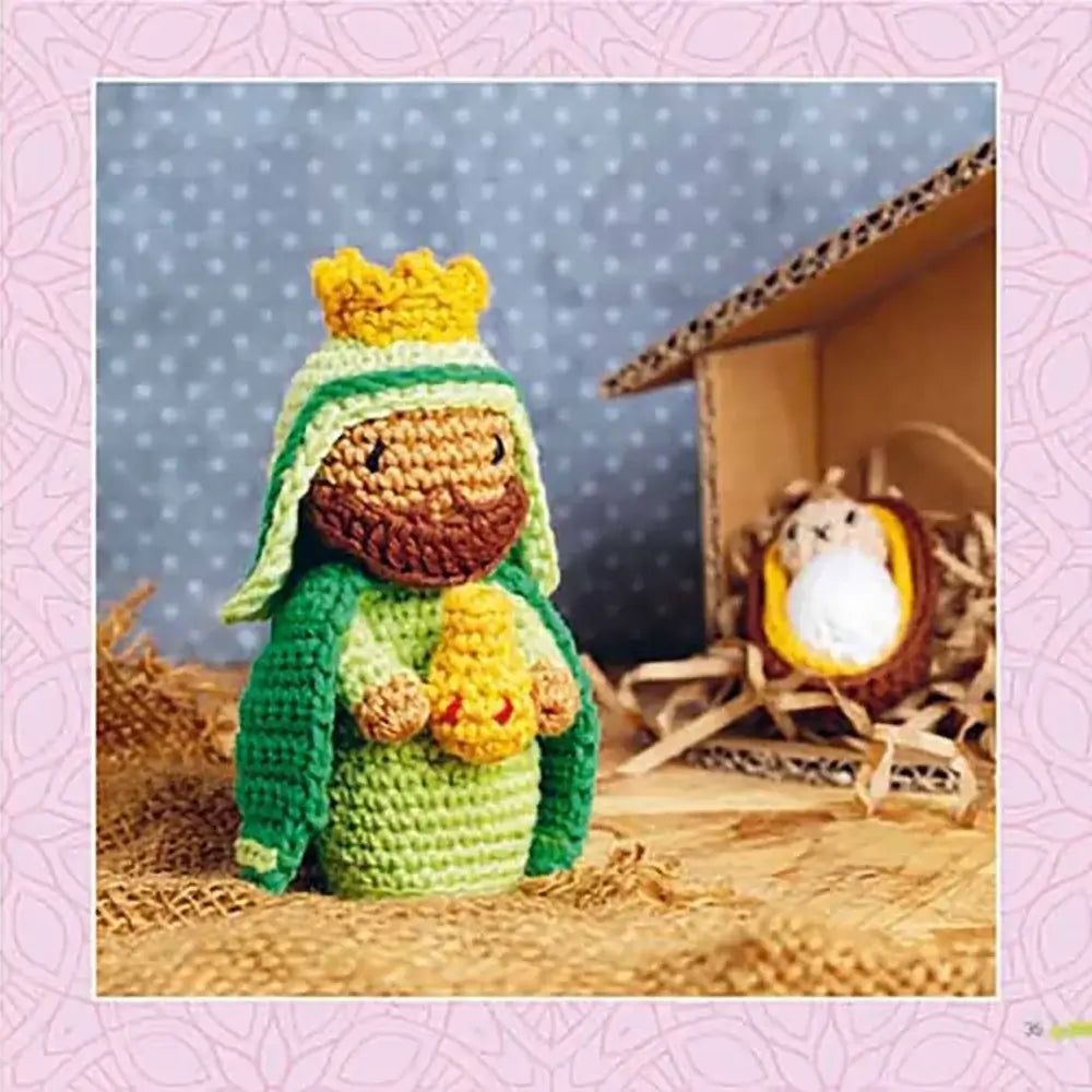 El libro presenta todos los personajes clásicos del belén —María, José, el Niño Jesús, los Reyes Magos, el ángel, el pastor, el burro y el camello— reinterpretados con estilo tierno y proporciones simpáticas. Cada figura se trabaja por piezas sencillas, con explicaciones claras para tejer la cabeza, el cuerpo y los accesorios. El resultado son muñecos de ganchillo de unos 10 cm, perfectos para decorar la casa con calidez o crear un regalo único en época festiva.