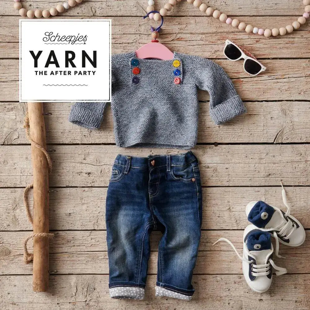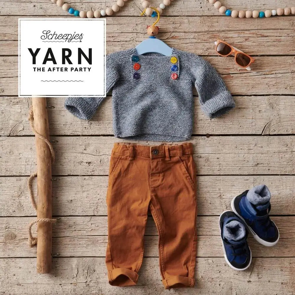 El patrón impreso YARN The After Party nº 83 – Bibbed Sweater (Scheepjes) está diseñado para trabajarse con hilos de grosor DK, concretamente con Scheepjes Merino Soft Brush, que aporta calidez, elasticidad y un acabado jaspeado muy adecuado para prendas infantiles. Las cantidades exactas de ovillos dependen de la talla, y están especificadas en el interior del patrón. Además del hilo, se requieren agujas rectas de punto y botones decorativos pequeños para la pechera.