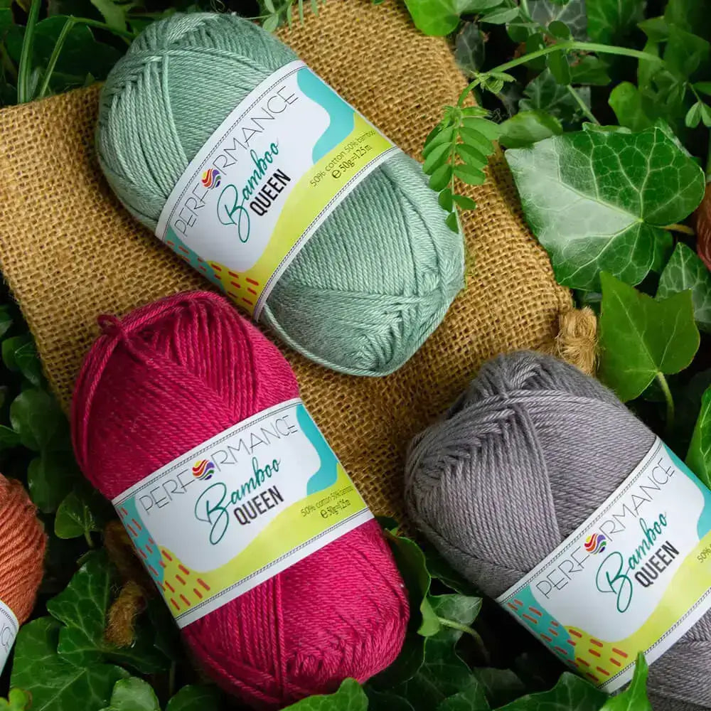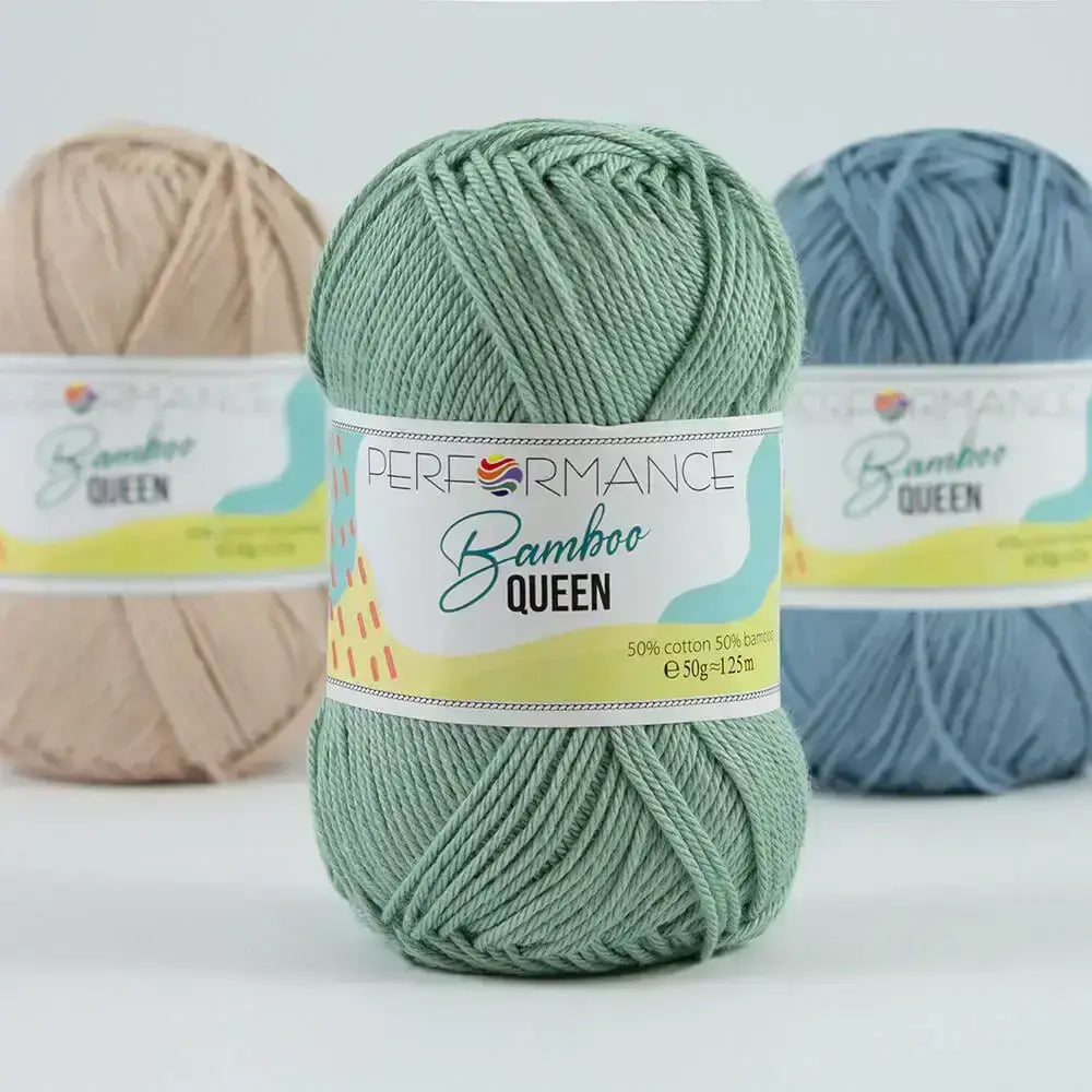 Bamboo Queen es el hilo ideal para quienes buscan crear prendas y accesorios ligeros, transpirables y con un acabado natural. Fabricado por la marca búlgara Performance, este hilo combina 70 % viscosa de bambú y 30 % algodón, dos fibras vegetales que ofrecen una experiencia de tejido excepcional.