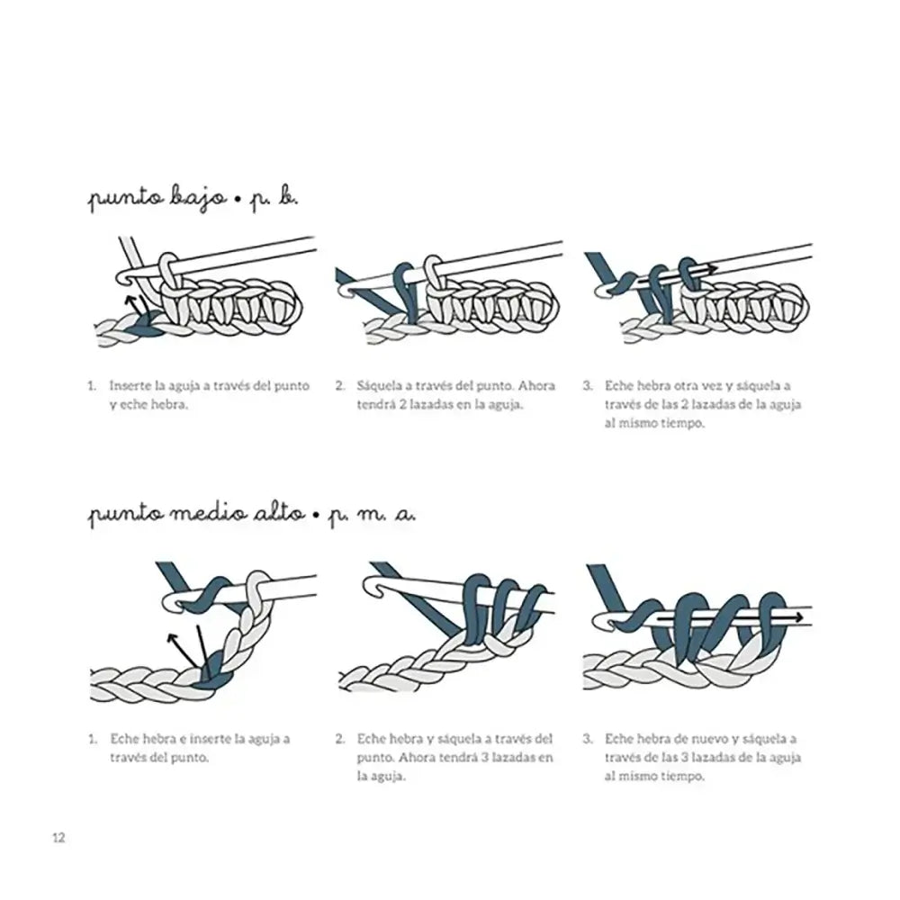 El enfoque pedagógico del libro es especialmente acertado para quienes se están iniciando. Cada diseño está explicado paso a paso, con instrucciones escritas acompañadas de símbolos universales, lo que facilita el seguimiento del patrón. Esta doble lectura es muy útil para quienes prefieren aprender de forma visual. La sección introductoria ofrece una pequeña “escuela de crochet” con puntos básicos, lo que convierte este título en un buen libro de crochet para principiantes con proyectos útiles.