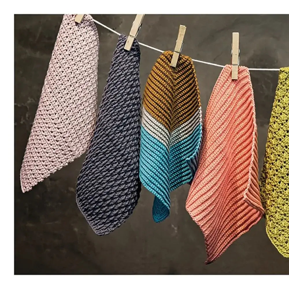 Los diseños que encontramos en el libro Prendas de ganchillo / Crochet para la casa tienen su origen en una mirada cotidiana: la cocina, el baño, las tareas domésticas. Desde ahí, las autoras, Camilla Schmidt Rasmussen y Sofie Grangaard, han dado forma a propuestas que combinan belleza y utilidad, como paños de cocina, toallitas o pequeñas alfombrillas. Esta cercanía a lo cotidiano convierte el libro en una herramienta realista y accesible, con ideas que se pueden poner en práctica sin necesidad de materiales complicados.