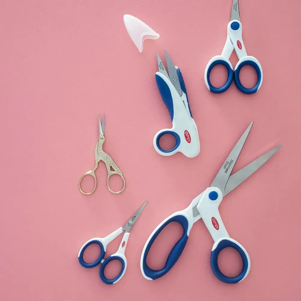 - ▷ Contenido (5 piezas): tijeras de modista 20 cm; tijeras de costura 13 cm; tijeras de bordado 10 cm; cortahilos 13 cm con capuchón; tijeras de bordado tipo cigüeña 9 cm.