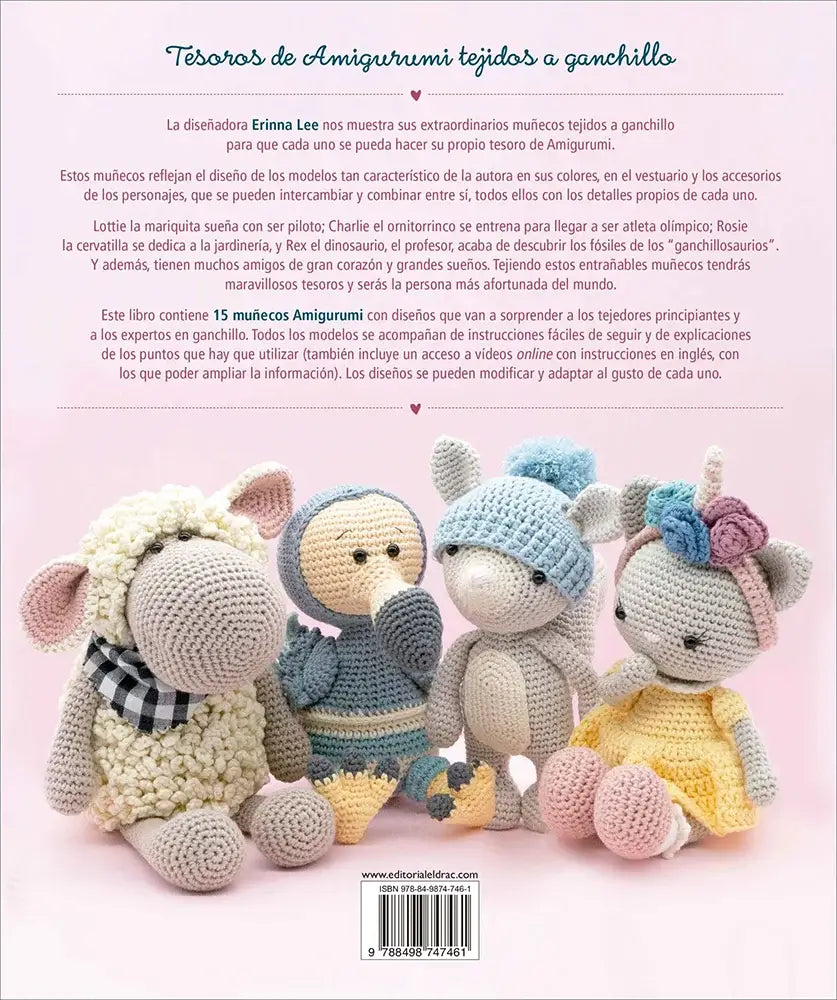 El libro Tesoros de Amigurumi es una invitación a tejer criaturas encantadoras que despiertan sonrisas. La diseñadora Erinna Lee ha creado una colección de muñecos de ganchillo adorables paso a paso, con una estética dulce y un enfoque claramente narrativo. Cada personaje tiene su propia historia y personalidad, lo que convierte la experiencia de tejer en algo mucho más emocional y significativo. Este libro no solo enseña a hacer amigurumis, sino que propone pequeños universos tejidos con alma.