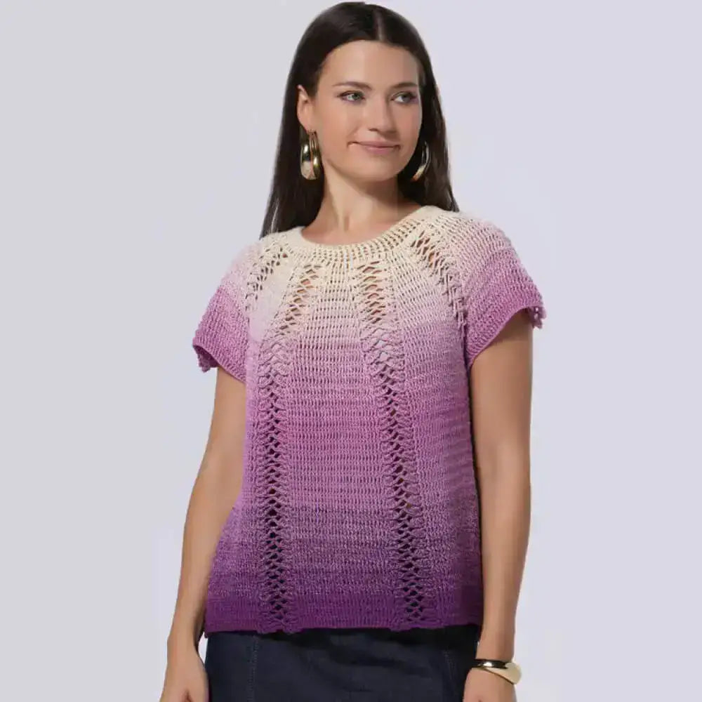 Su degradado suave combinado con el efecto lurex lo hace ideal tanto para tejidos lisos como para calados, sin perder definición en texturas.