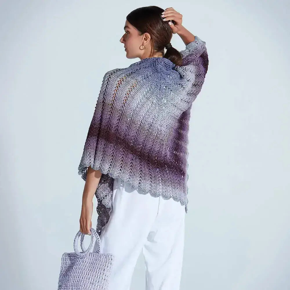 YarnArt Flowers Moonlight, el hilo para crear bonitos chales y prendas para primavera con colores degradados y un tique de brillo.
